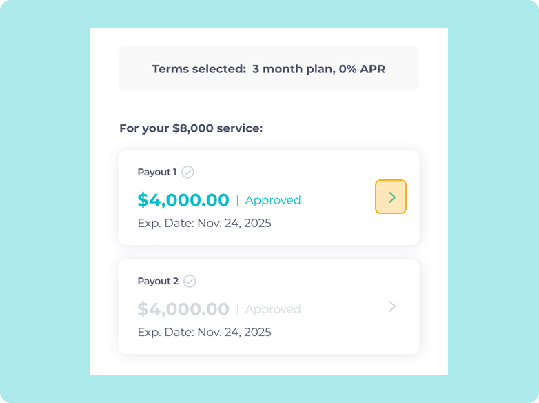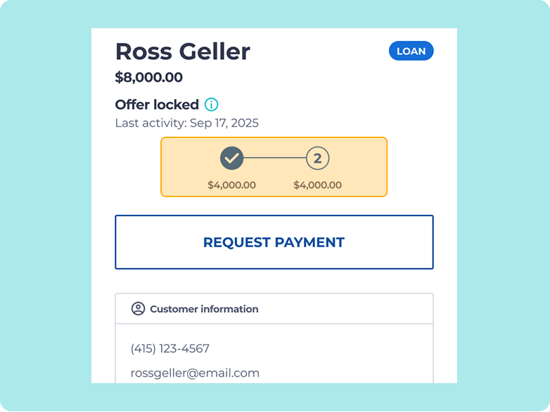 4. Eligible customers can review their offers. Once they've locked in their choice, they can review details and release payment by clicking the first payout.