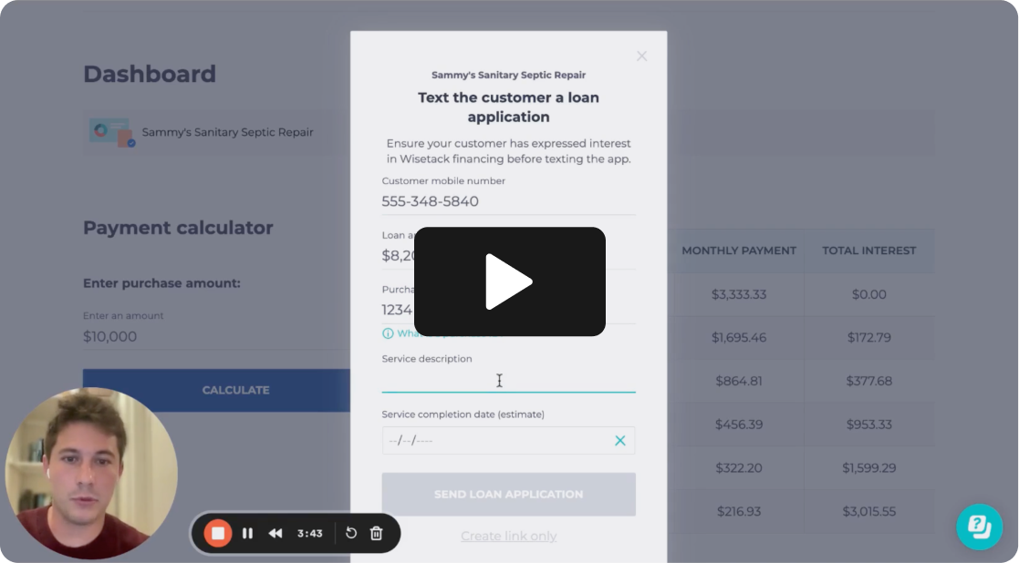 You’re only charged the 3.9% fee when Wisetack helps you close a job. No setup costs or hidden fees—just pay per successful sale. This fee helps us keep your financing tools simple, fast, and supported.